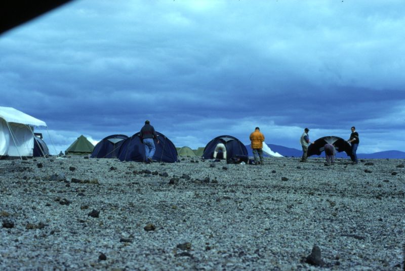 An der Dreki-Hütte: Eine Busladung Niederländer beim Zeltaufbau