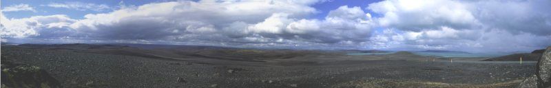 Nach dem nächsten Aufstieg: Blick zurück auf den Þórisvatn (rechts im Bild) und auf die Landschaft im Süd-Westen.