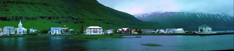 Die Altstadt von Seyðisfjörður, links die
