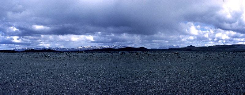 Am Ausgang des Dyngjufjalladalur, Blick nach Osten auf den Schild des Kollóttadyngja. Rechts davon Heršubreiš.