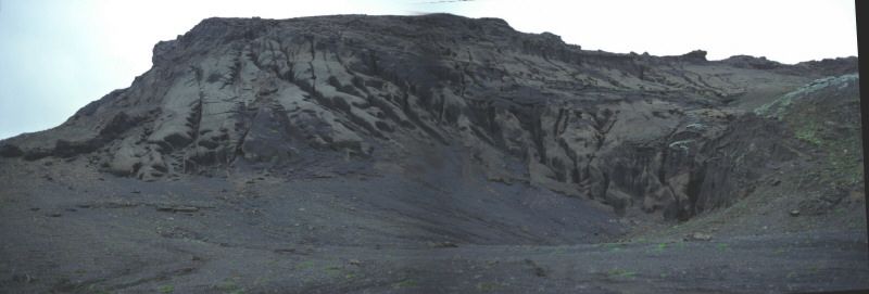Von der Erosion zerfurchter Hügel auf dem Miðdalsfjall