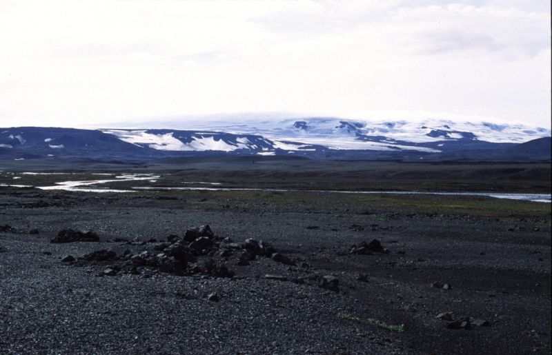 Blick über den Hraunkvísl zum Gletschwervulkan Báršarbunga