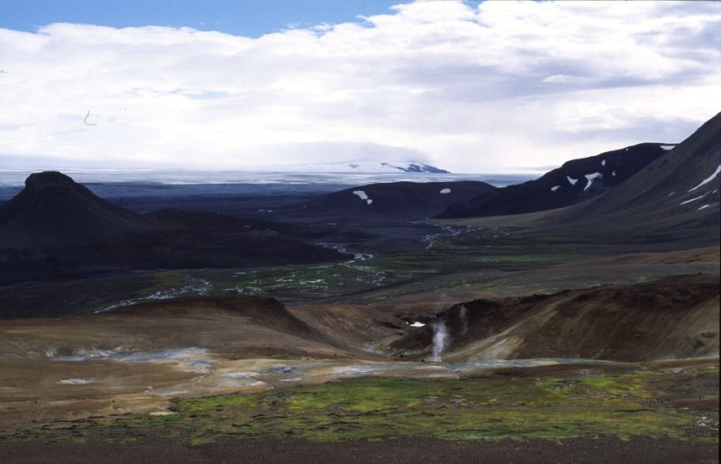 Blick ins Snapadalur. In der Mitte das Solfatarengebiet