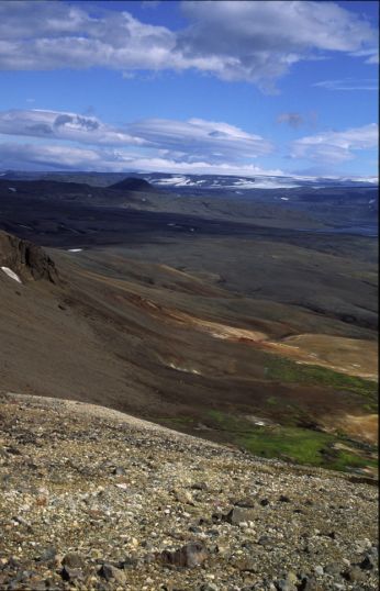 Blick von der Flanke des Eggja auf den Valafell und das Gjóstukliff
