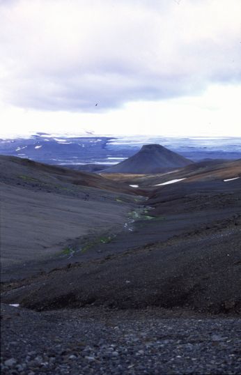 Blick vom Göngubrún zurück ins Snapadalur und auf den Deilir