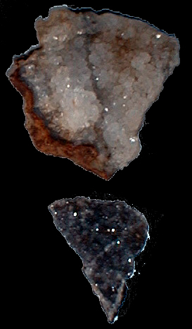 Im Norwesten Islands beginnt am Paß Vatnskarð die Wanderung zum Dyrfjöll ("Türberg"), einem über 1.100 m hohen Basaltfelsen, der seinen Namen einer großen Kerbe in seinem Gipfel verdankt. Die markierte Route bietet, nachdem der Anstieg zum Geldingafjall geschafft ist, einen grandiosen Blick in das weite Dyrfjalladalur. Weiter geht es an der Rückseite des Geldingafjall. Dabei lohnt sich ein gelegentlicher Blick auf den Boden, denn das Geröll ist reich an Kristallen und geologisch interessanten Gesteinen (wie die Drusen links). Nachdem der Gipfel des Súlur passiert ist, wird links bald wieder der Dyrfjöll sichtbar. Die aus der Wand herausgebrochenen, teilweise hausgroßen Steinbrocken füllen in wildem Durcheinander das Tal Stóruð. In dem Erdrutschgebiet liegt ein türkisfarbener See, der auf dem Foto aber noch größtenteils vom Schnee verborgen wird. |