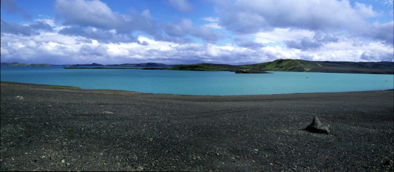 Wasser ist auf der ganzen Strecke in erreichbarer Nähe vorhanden. Meist jedoch in Form der Stauseen, an denen die Piste entlangführt, und daher meist milchig-trüb. Gleich hinter Nưidalur ist ein Fluß zu furten, der sich bei niedrigem Wasserstand auch trockenen Fußes überqueren läßt.