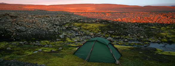 Wasser: Zu Beginn ist Wasser reichlich in Form von Gletscherflüssen zu finden, die gefurtet werden müssen. Die Dyngjufjallaleið begrüßt uns mit einer warmen Quelle, die zu einem Pool aufgestaut ist. Danach gibt es bis zur Suðurá kaum nennenswerte Furten, Trinkwasserbäche sind jedoch, wenn auch in größeren Abständen, zu finden. Eine Tagesetappe ohne Wasser stellt die Wüstenstrecke zwischen dem Hagalækur und der Hütte am Bláfjall (Heilagsdalur) dar.